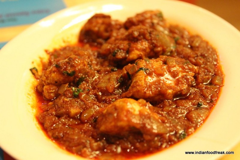 Me, on the other hand, am not made for fasting and as such, also tried a few typical Maharashtrian non vegetarian dishes. The start off was as expected with the Rawa Bombil fry where I struggled to find the fish under the heavy coating of rawa. The Chicken Sukhe was a far better starter with perfectly balanced tomato onion sauce with a kick of heat.