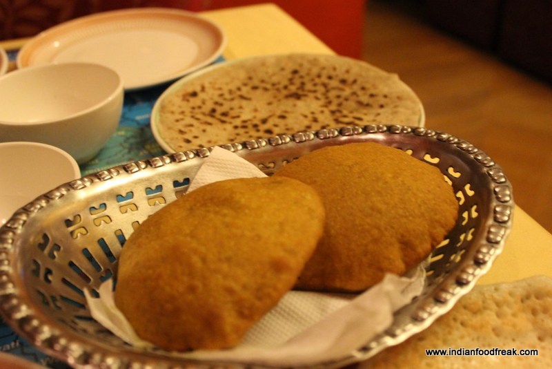 The main course dishes on the thali were simple with clean flavour. Being totally satvik, they were not very sharp on any of the spices and felt straight out of the kitchens of moms and grandmoms of a typical Marathi household. Of the main course dishes, the worth mentioning ones were the Arbi (Colocassia) and Pineapple amtis and the Vari Masala Bhaat with loads and loads of dry fruits, it paired magically with the Pineapple and Tender Coconut saar- a sweet and spicy coconut and pineapple based thin soup. Potato fathfate and the Suran, sabudana and Shengdana rassa were average. What really makes the thaali extremely delectable are the freshly made piping hot Amboli, Vade and Jwaar Bhakri. Honest, clean, simple rustic beauty.