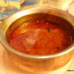 You could feel the cardamom in the white Pandhra rassa (Rs. 429) but I found the flavours to be a bit too mild. However when we added a dash of lemon, the whole dish took a new identity and went amazingly well with fresh hot Ambolis (Rs. 39).