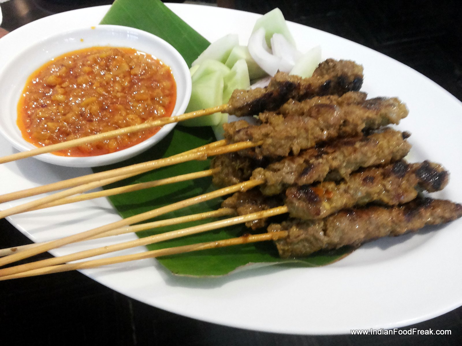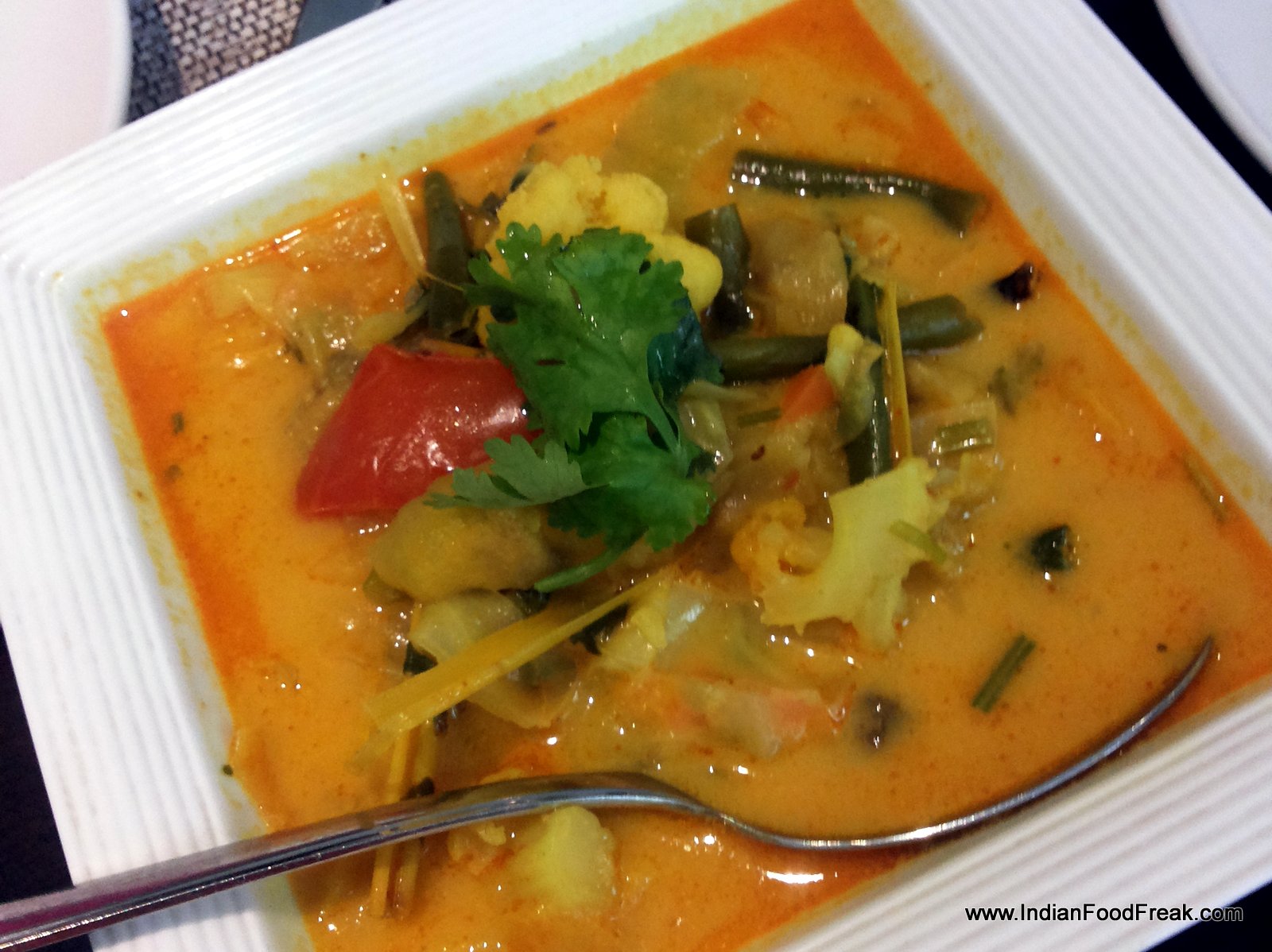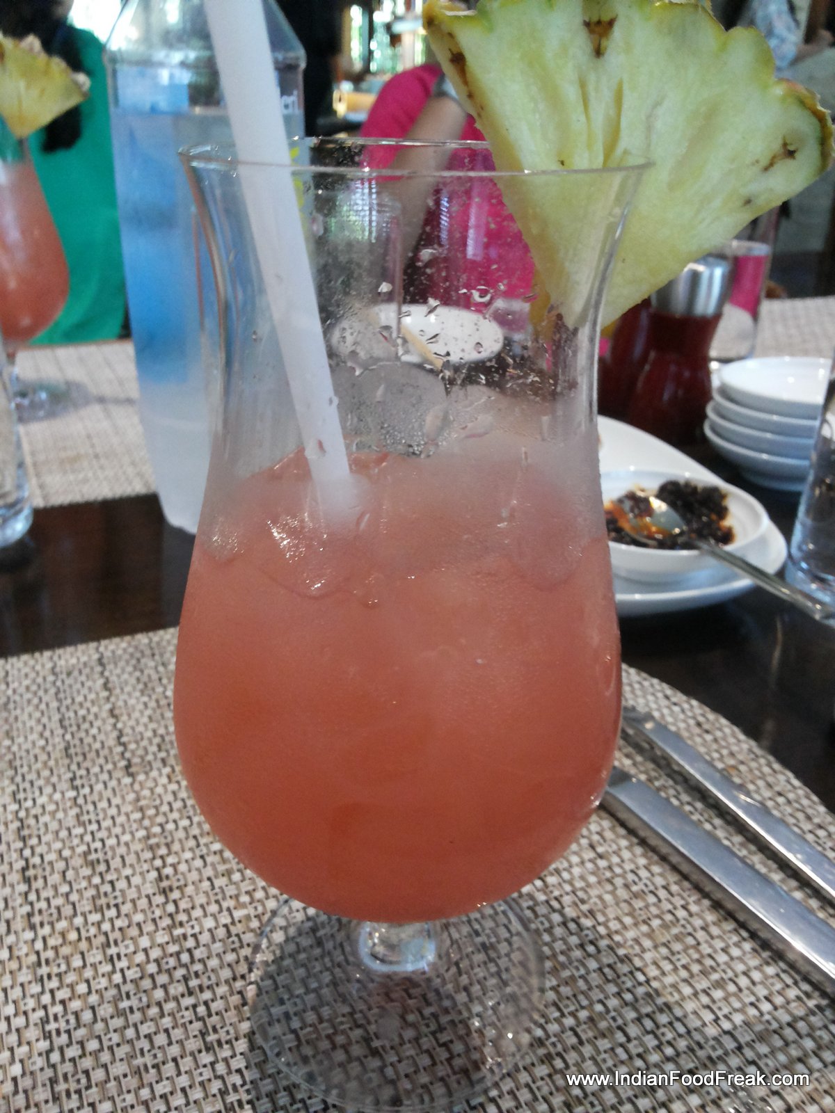 I started with the Vegetables Rolled in Rice Paper and shot glass shaped Canapés with Veg. Stuffing which were difficult to eat as they were crumbling with each bite and becoming a messy affair. These were followed by the soft Chicken and Mutton Satay with freshly made peanut sauce which were very well made and charred to perfection. The starters were downed by me to the accompaniment of an excellent Singapore Sling, a gin based cocktail invented in and made famous by the Raffles Hotel in Singapore.