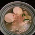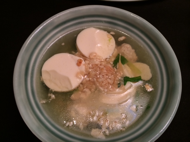 The next dish was Laab Kai–Thai minced Chicken salad with roastedglutinous rice. She got an ordinary grinder from home to show how easy it was to mince the chicken without taking recourse to fancy heavy duty mixer grinders. For the Kaeng Cherd Tauhu which was a Silky bean curd soup with chicken dumplings, one could use the commercial stock cubes available in the market.
