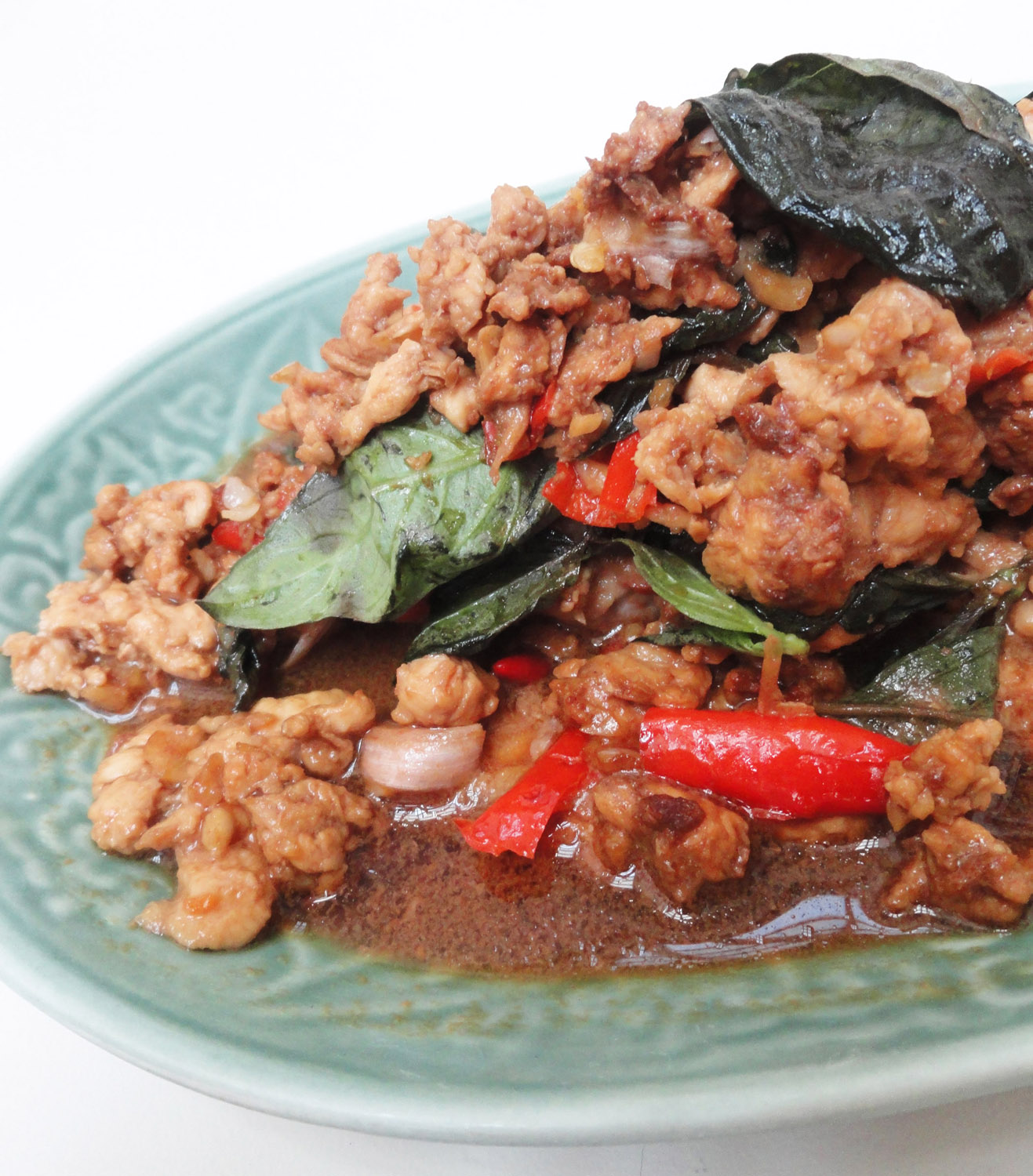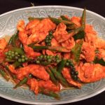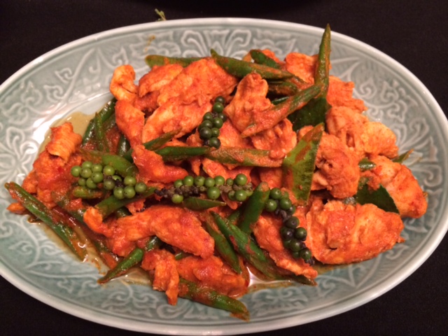 In the Phad Phed Kai– Wok fried chicken and green beans with redcurry paste one need not make the curry paste from scratch as all ingredients are not easily available in India. The packaged variety will impart as good a taste. The green beans used in this dish are not French beans but what we call “lobhia ki phalli” in Hindi.