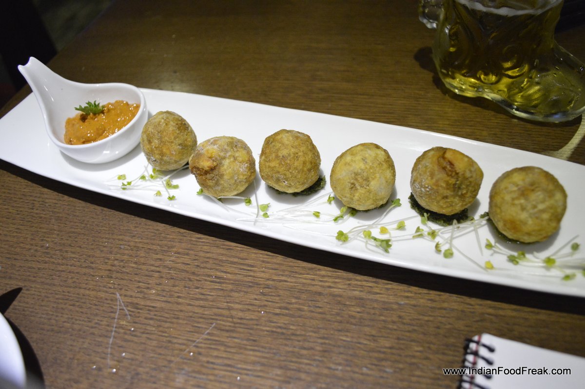The menu at Café Torque is surprisingly much more than a normal café/pub. The food is primarily American and Mediterranean and with cafe pricing and fine dine quality, menu by Chef Arun Chanda definitely excites. Do not miss on the Turkish style roasted chicken (375). The flavorful sumac and cumin mix with succulent and juicy roasted chicken, it is what best a chicken can be. Bacon wrapped chicken, interestingly called Chicken and Bacon Suspensions (345) served with pesto is a good beer accompaniment.