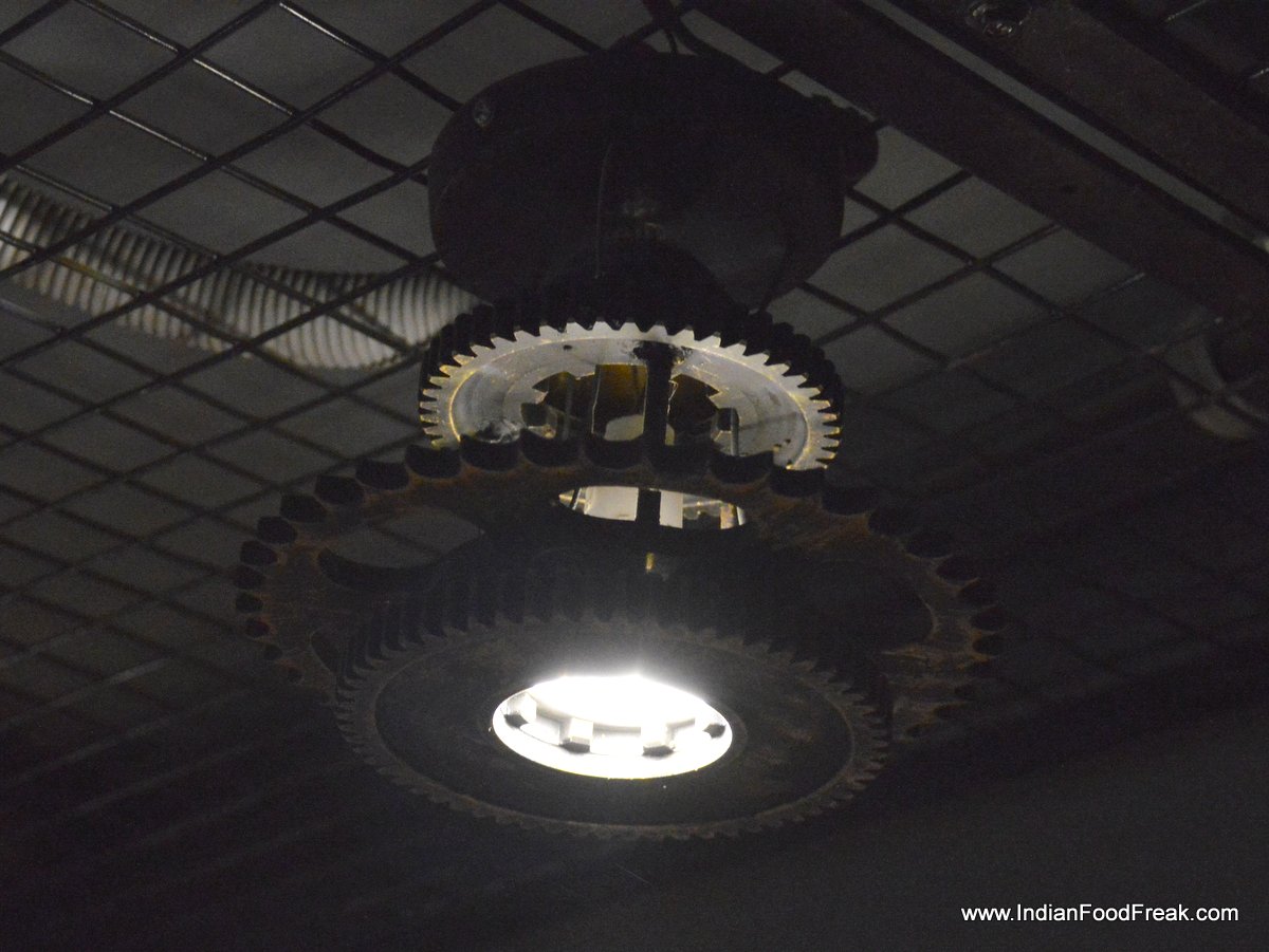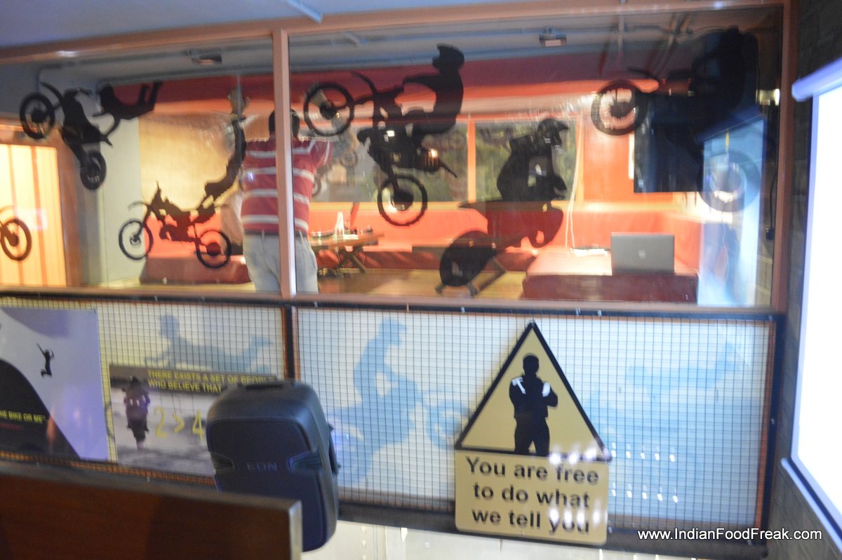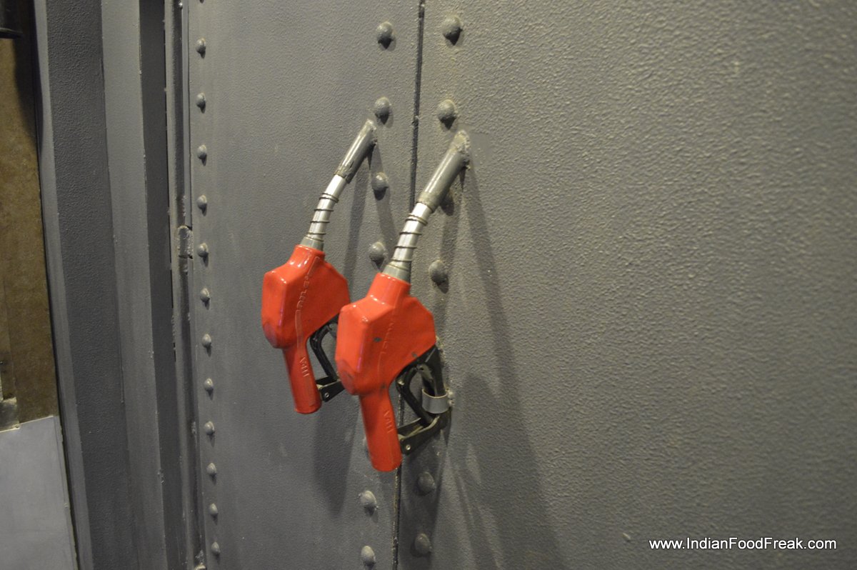 Biker theme restaurants have suddenly caught the fancy of the city and there are quite a few which have come up recently. Having said that no one has given the interiors as much thought as Café Torque. From the name of the restaurants to the dishes name in menu, from bikes on display to the electrical fittings, from the bar stools or petrol fuel dispenser shaped taps to the way beer is served, everything has an attitude and everything has a theme without overpowering the basics that this is a place to chill and relax. However music can be a bit louder and instead of showing TLC, a sports channel perhaps will do more justice to entire theme.