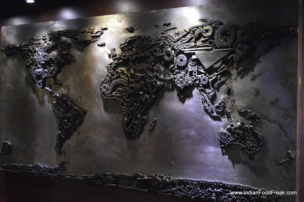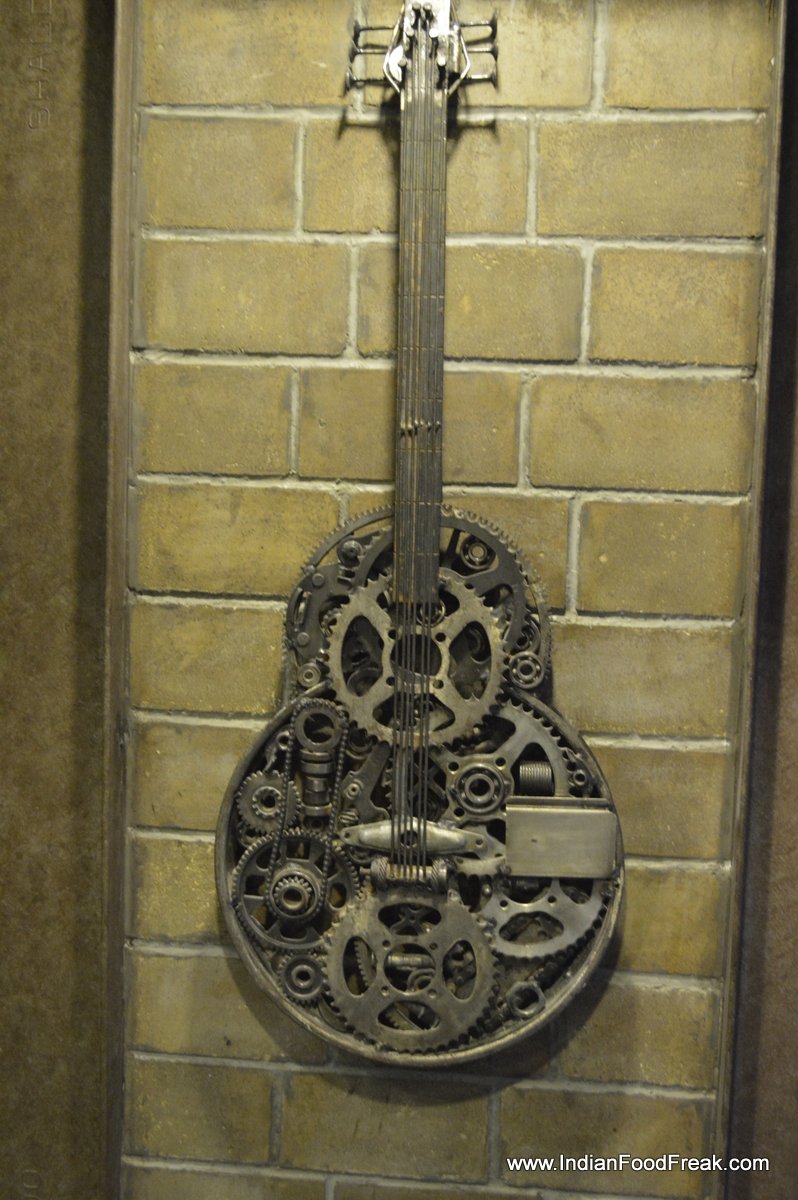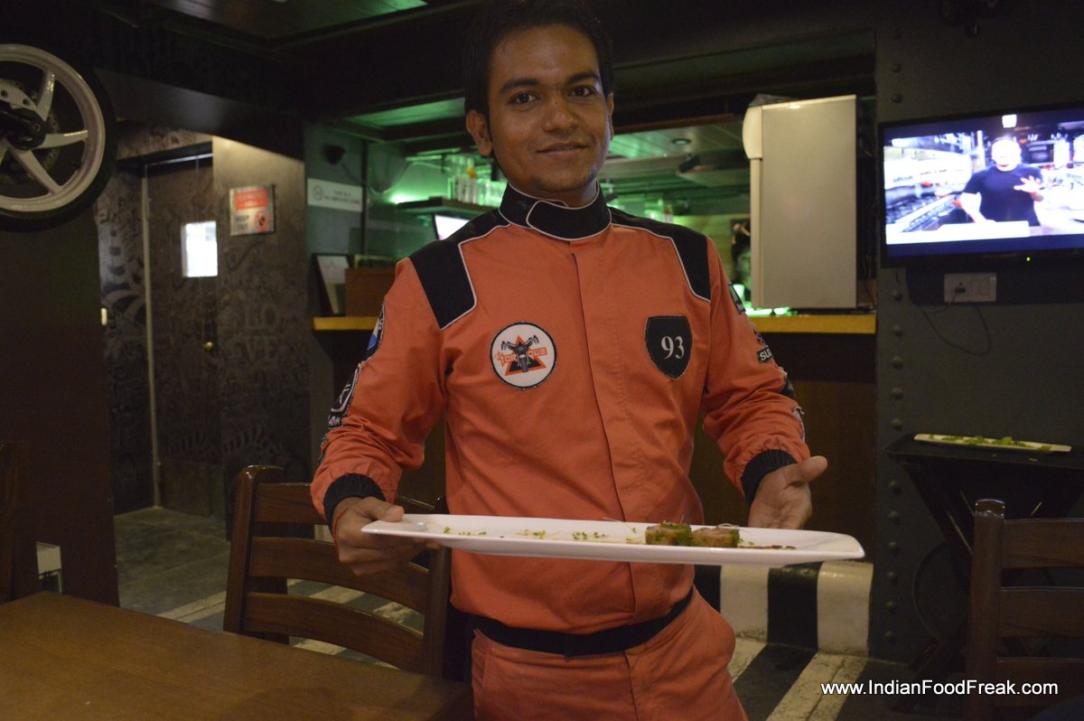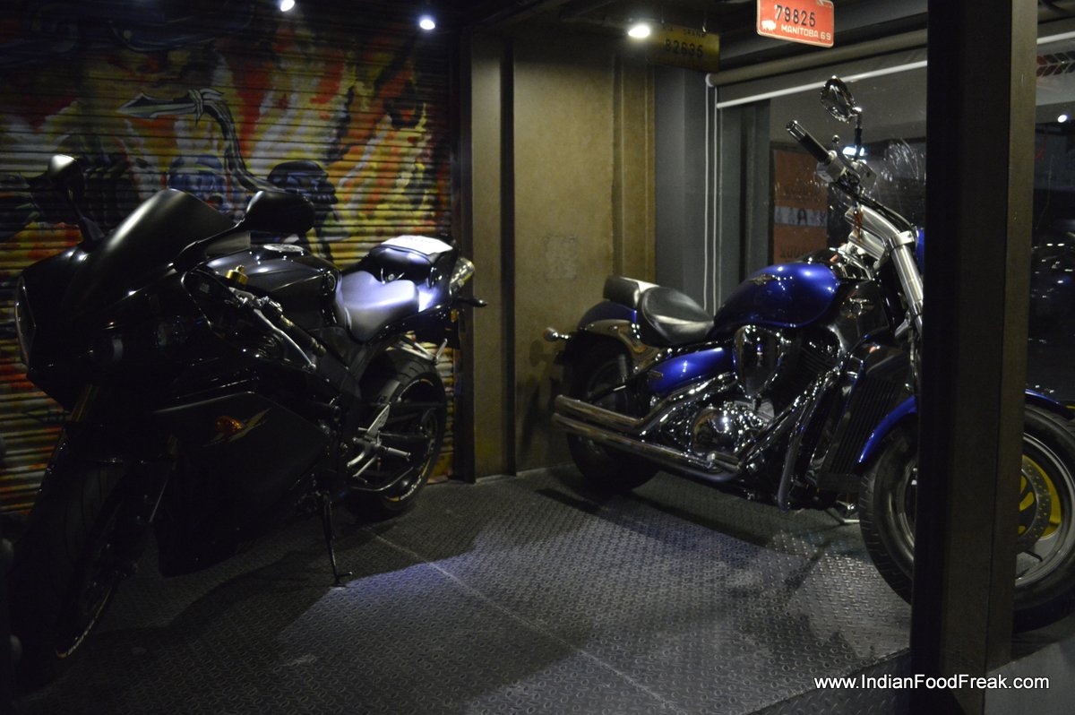 Biker theme restaurants have suddenly caught the fancy of the city and there are quite a few which have come up recently. Having said that no one has given the interiors as much thought as Café Torque. From the name of the restaurants to the dishes name in menu, from bikes on display to the electrical fittings, from the bar stools or petrol fuel dispenser shaped taps to the way beer is served, everything has an attitude and everything has a theme without overpowering the basics that this is a place to chill and relax. However music can be a bit louder and instead of showing TLC, a sports channel perhaps will do more justice to entire theme.