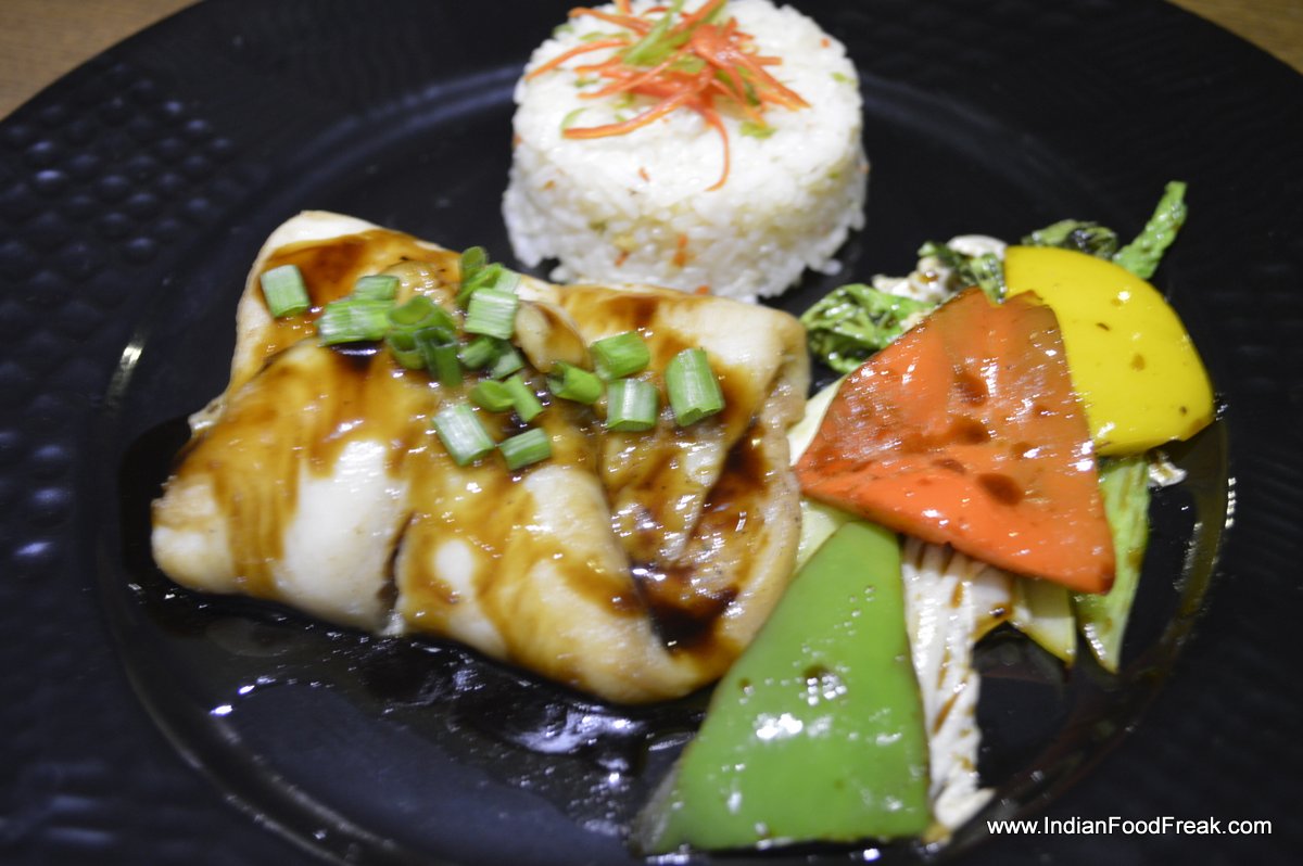 The ‘brotherhood thump’ Burger (345) has a 200 gms juicy lamb patty with nicely sauteed mushrooms but extra caramelised onion and bbq sauce makes it a little too sweet. Fish Teriyaki (545) is the only thing that seems out of place in a well developed menu. The basa fish does not lend any flavors to the otherwise bland dish in which the only flavors one gets is through the bird chilly nicely chopped and concealed in the sticky rice.