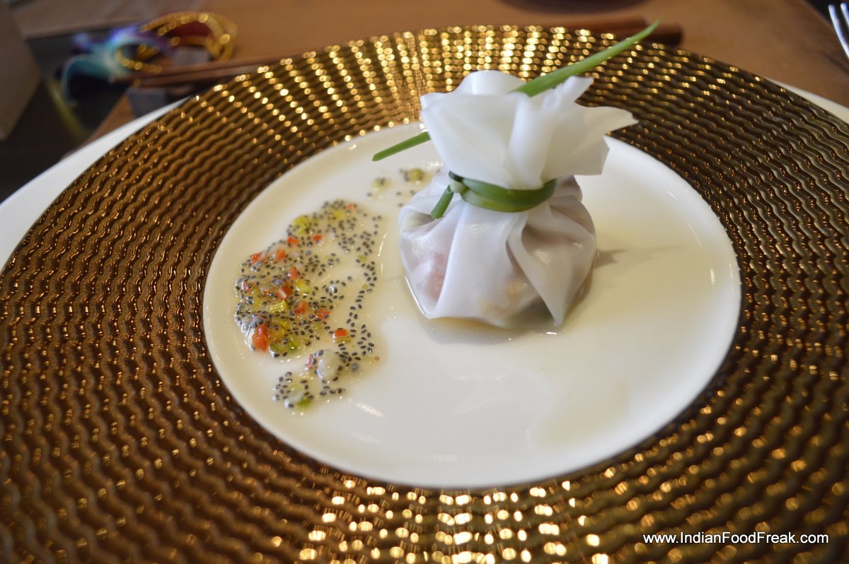 The refreshing lemon grass daiquiri and the amuse bouche, a delicate, translucent, steamed dumpling, redolent with the scents and flavours of lemon grass and galangal, served on a gold fluted plate, set the tone of the chef’s style and approach to the cuisine to follow – classic, flavourful and elegant.