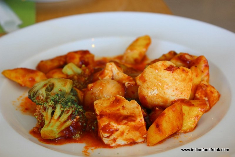 In the mains, the biriyani masaaledar was very aromatic and tasty, Chinese stir fried tofu quite delicious; but the dish that stole the show for me was the Braised Pork chops with pineapples. The meat here was literally falling off the bones and the sweet and tanginess of pineapples lend the perfect flavour combination to the dish. As I write this, my mouth is salivating once again remembering the juicy chops.