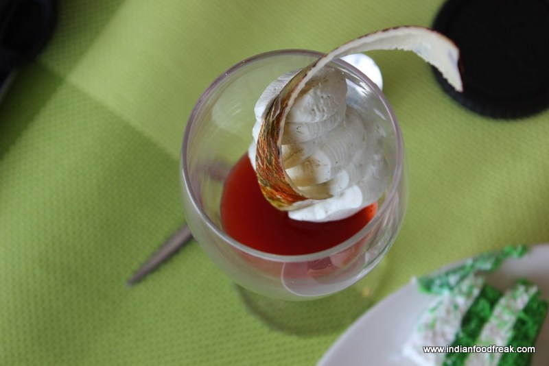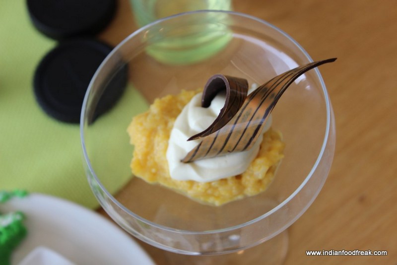We were poured a Zampa Soiree 2011 Sparkling wine which was very crisp and refreshing and quite an apt accompaniment for the meal that followed. I started off with a Tomato soup with smoked pepper which was thick to the right consistency, slightly on the sweeter side with a hint of smoked pepper. Having set the tone with this worthy soup I headed for the seafood salad which has a mango infused dressing that I found to be quite delicious.