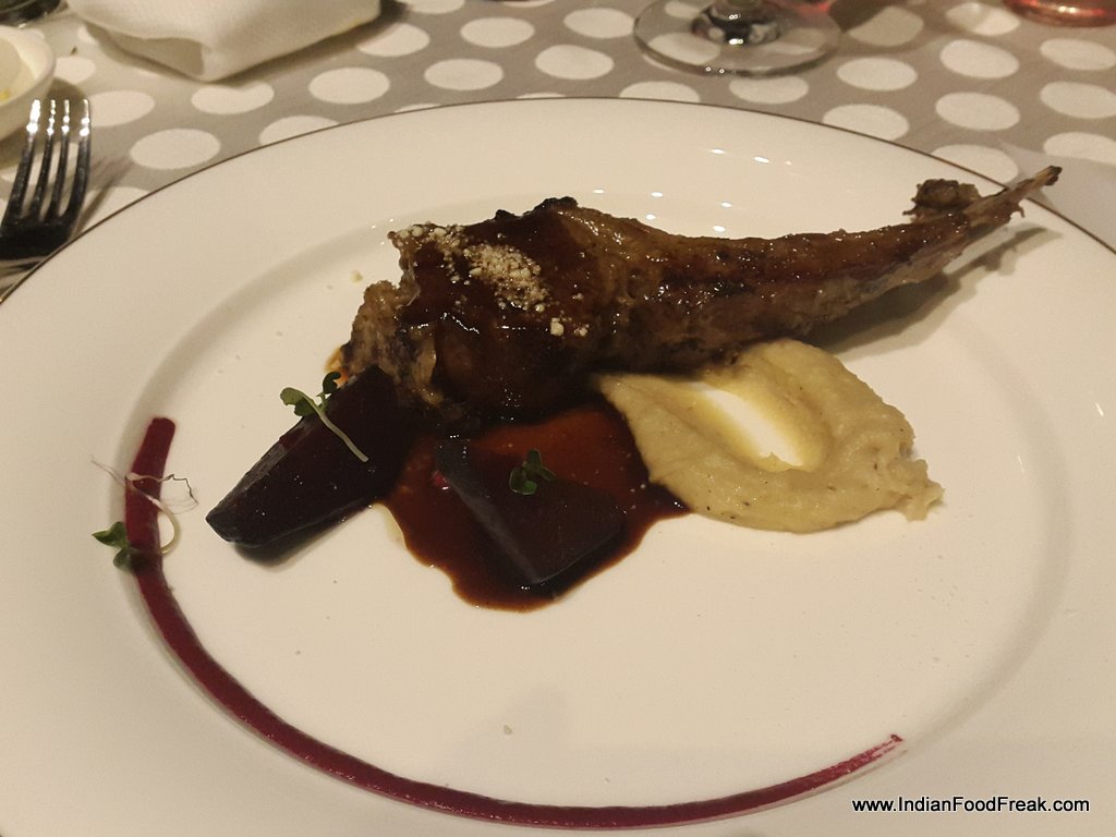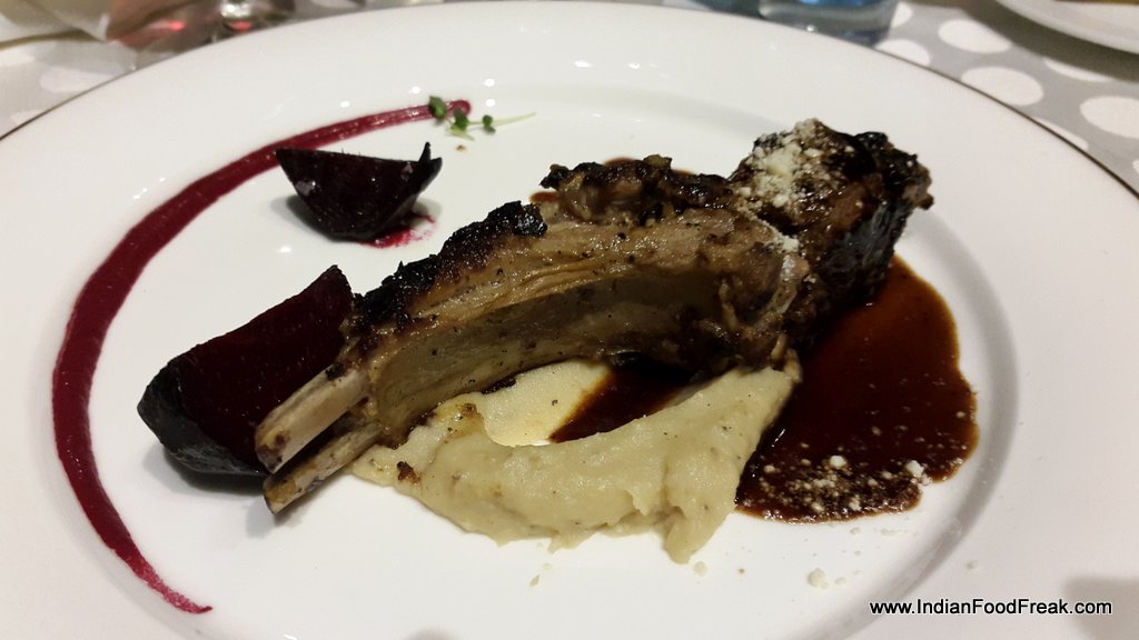 Tasmanian Roast Lamb Rack with Glazed BeetrootsI chose the Tasmanian Roast Lamb Rack with Glazed Beetroots for KyrioPiato, my main course. It shone bright like the legendary Pharos, the huge rack of lamb done perfectly so, juicy and soft, the glazed beetroots sweetening the sauce drizzled on the plate and the lemon mashed potatoes playing a neat adagio in the background. It was a classic and paired very well with the medium-bodied, faintly spicy Chianti classic Banfi DOCG. The vegetarians were delighted with another classic, Moussaka.