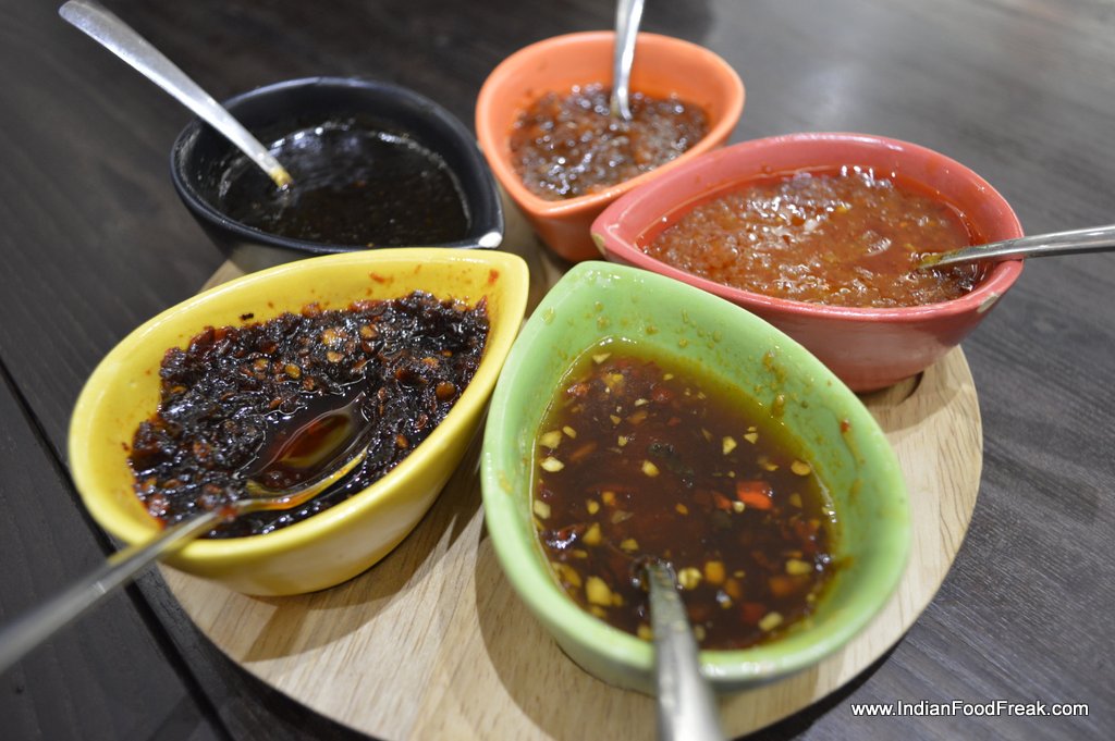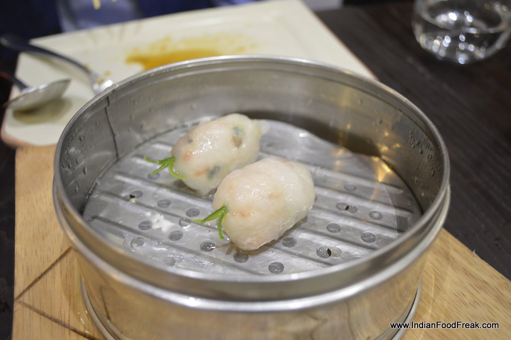 We tasted several Dim sums during our tasting of which the stand out ones were the Veg Yum Cha Vie (Sou Lung) (Rs.200) and the HarGaw Prawns (Rs. 300) The Crystal 3 Duck dumplings were a sheer delight and the fillings inside each of them were quite flavourful. We were served five different kinds of side sauces of which I loved the chilli and jaggery sauce and the lemon chilli sauce. The prawn and chives dim sums was interesting as the wrapper was made of potato starch – however, I found it a bit dense in taste as compared to the other better ones tried in the course of the evening.