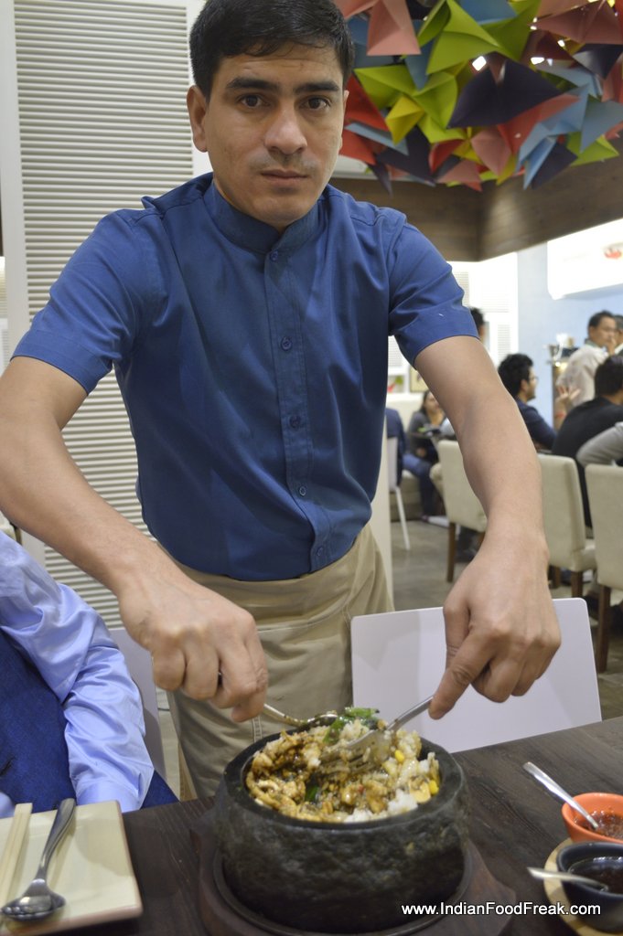 The décor at the restaurant is very tastefully done with origami decors symbolizing different aspects of the menu, a wide open façade which gives an ample view of the kitchen and a vibrant seating area thereby enticing the passers-by to stop and give it a dekko.