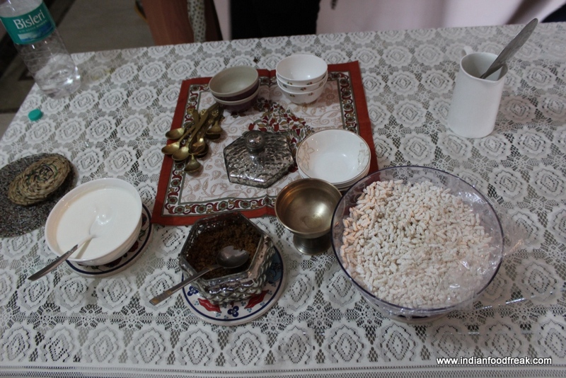 The standout of the meal for me, however, was the simplistic dessert of rice puffs (this kind is puffed in salt instead of sand and has a unique flavour) mixed with cream and homemade sugarcane jaggery. A very simple rustic rural dessert with simple honest flavours that talk to your palate as well as to your soul. I could picture myself adding mango pulp to this and eating it chilled on a hot summer afternoon. Drool!