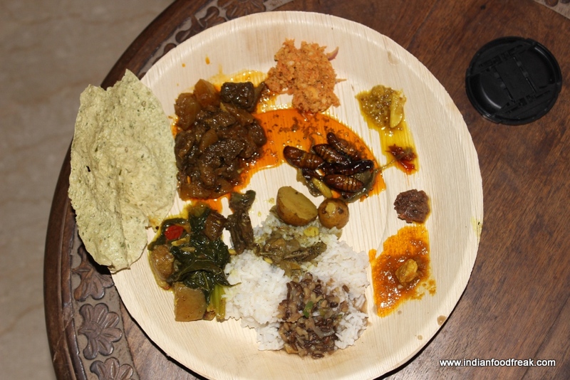 I recently had a chance to try her New Harvest special lunch which was organized by Meal Tango where she had brought in special greens and meats from villages of Assam which included pigeon, geese and hold your breath – the creepy silk worms !