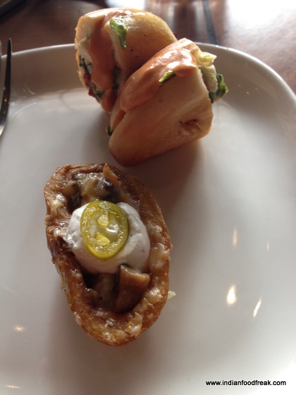 As the starters are circulated, I opt for the vegetarian selection giving the Baked Fish Pezzi, Shrimp Casalingi and Glazed Chicken Pops a miss. And am I glad! The Baked Cheesy Mushroom Baby Potato oozes with cheesy goodness and is flavoured with jalapenos, sour cream and chives. The Shredded Burrata Soft Butter Bun melts in the mouth leaving a perfect balance of peppery rocket and tangy sundried tomato on the palate. This turns out to be the most delicious part of my meal. While I can easily have more of this yummy bun, I have to save space for the main course and desserts.