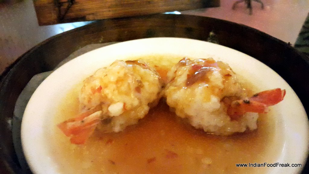Jumbo Prawns in basil sauceThe truly Jumbo-sized Prawns in Basil Sauce, a yet-to-be-incorporated dish in the menu, was too robust in flavour, the basil and spices, overpowering. A bit toned down, the dish can be a popular choice. The Sesame Chocolate Dumpling could have done with more chocolate fondant filling and a thinner, less chewy crust.