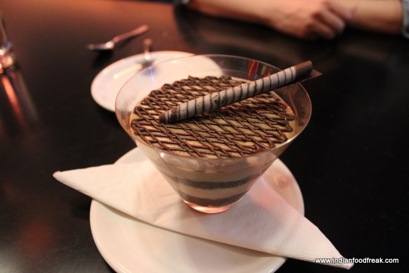 The desserts that followed could not hold themselves in front of their predecessors. I found the Tiramisu (Rs.325) to be too densed and a bit heavy handed on the alcohol and the Chocolate lava shot (Rs. 250), though goeey, quite basic and simple. For a restaurant of that quality I expected the desserts to be a bit classier.