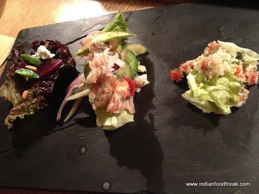 A very interesting dish for the evening was the Lambda (Rs.230) which was cheddar stuffed lamb balls on pita bread. One could call it an Indianized version of an open burger. With the meaty, spicy and juicy flavours, this works as an excellent dish to accompany hard liquor but can get a bit clumsy to eat.