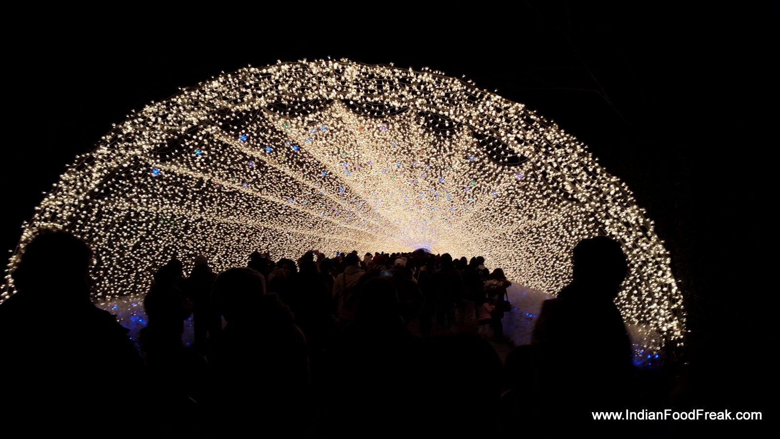 As the saying goes, the best is saved for the last – we are taken to Nabano no Sato in Nagashima town. Nabana no Sato is a theme park on the island of Nagashima in Kuwana. The main focus is flowers but it also has an onsen, a number of restaurants, some traditional shops and, most notably, one of Japan’s finest winter illuminations. The huge halls are full of a lovely collection of well maintained flowers and plants. After taking enough pictures of ourselves, we visit the most impressive illumination that I have ever seen. Currently showcasing the theme of Niagara Falls (theme changes every year), the show runs for 4 months from November to mid March post which the people visit Nabana no Sato for the beautiful cherry blossom season. The tunnel of lights looks like a dream while the color and scenery changing Niagara Falls shows what a man can do with his imagination. The light illuminated Niagara Falls is larger than life and is 20 mtr wide and 120 mtr in height. The entire park uses over 7 million LEDs and is a feast for the eyes. There are interesting eateries including a restaurant, Nagashima Beer Garden, which serves locally brewed beer.