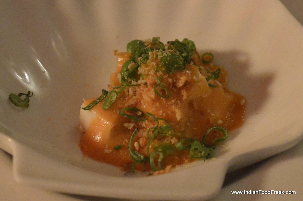 _DSC0002Pumpkin soup sounds ordinary enough. But smoking it with cherry wood chips lends such depth and character that the taste of every sip of Sakura Wood Smoked Pumpkin Soup lingers on long after. Tofu and Water Chestnut Motoyaki shall delight the vegetarians with its silken tofu and crunchy nuts bathed in umami rich sauce.