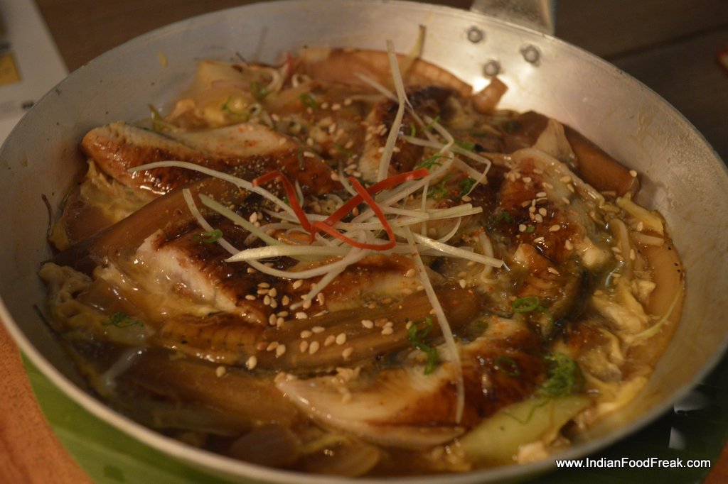 _DSC0015Tofu and Exotic Vegetable Curry Rice strikes a chord reminding one of the comforting taste of Maggi curry. It is sure to delight the local palate. Eel Yanagawafu, with the fish braised in a faintly sweet sauce served with egg on a bed of burdock root, is appealing. The strong flavour of the oily fish is balanced with the egg and the healing buckroot making it a true delicacy.