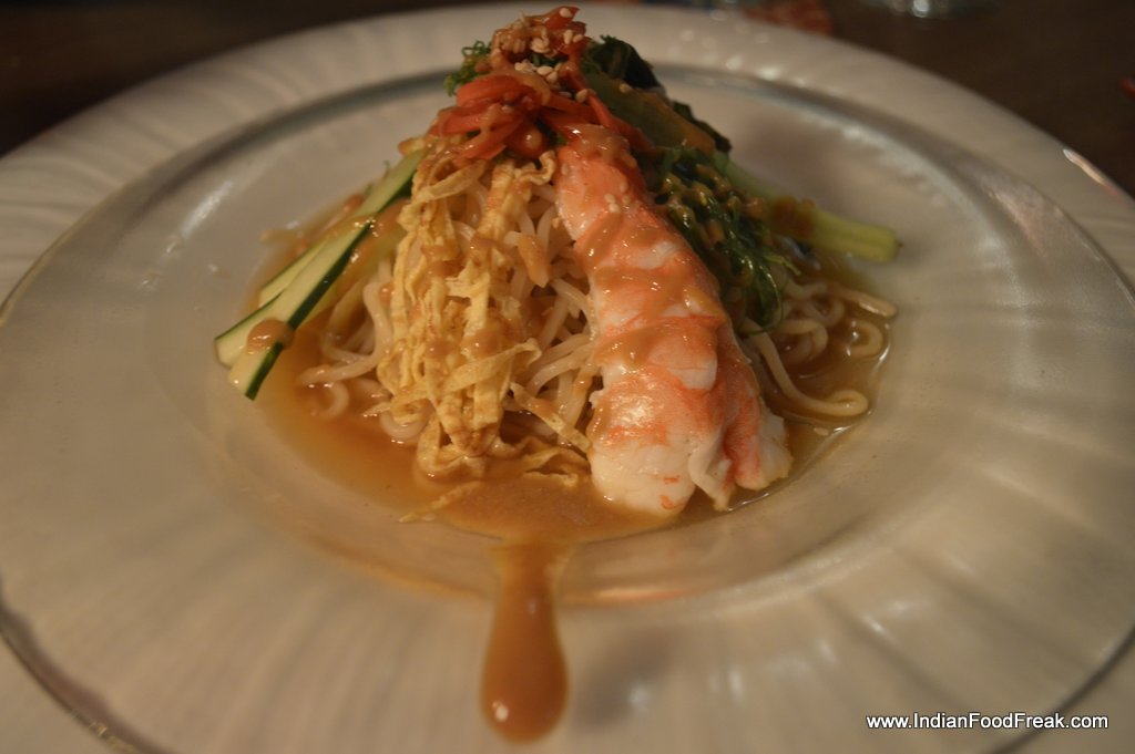 _DSC0018Hiyashi Chukka Chilled Ramen Noodle topped with prawn, crabstick and seaweed served with sesame flavoured soy broth is a popular summer dish in Japan and a meal by itself. The dish with colourful toppings is a feast to the eyes too.