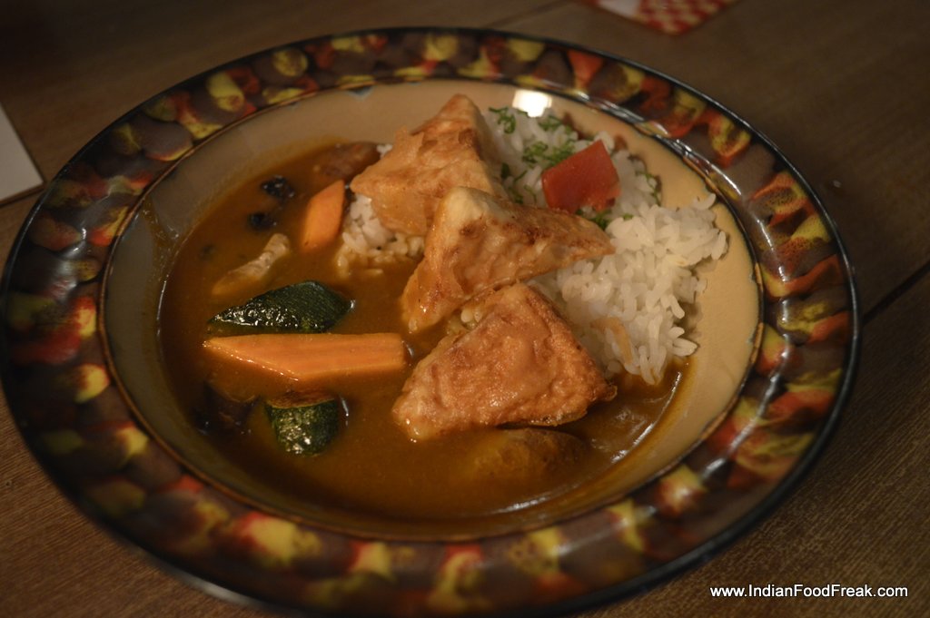 _DSC0012The Vegetable Tempura is a tasty finger food with coconut tempura adding the exotic quotient while the Paper Baked Grouper Fish with its subtle tastes may be a bit bland for robust palates.