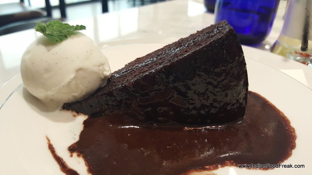 Why restaurants in India are mingy with mozzarella is beyond me and Pizza Express is no exception. We had asked for extra cheese on all our pizzas. The Margherita and Da Morire just about passed muster but the Four Seasons (thin crust) was disappointingly un-cheesy with red blotches of tomato here and there. Extra cheese means a white landscape! To their credit, our protest was duly addressed by Pizzailo Manish and a new one, this time on a classic crust, was served and much appreciated. Chocolate fudge Cupcake was above reproach though.