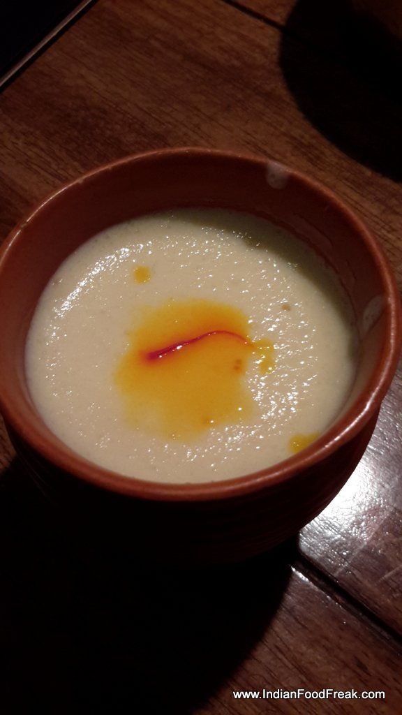 Last but not the least – the “to die for” Kesari Phirni. This phirni is totally different from any you’ve had because the consistency is that of a custard/mishti doi. One cannot get to taste the grains of the finely ground rice common to all phirnis. I actually asked Kamal if he had used rice flour for the phirni.