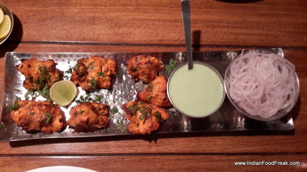 A special mention of the lovely tangy chutney served along with the kebabs. It makes a perfect marriage with the kebab and has a special ingredient which I managed to guess.