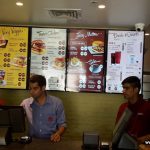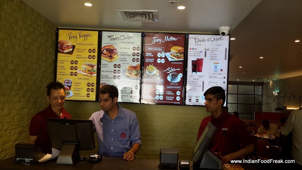 Ordering&billing counterThe place was running to packed houses with a huge waiting crowd outside. But there was order in mayhem. Wendy’s had organized two big benches on either side of the entrance, a thoughtful gesture. The security guard made sure that the waiting crowd outside each had a copy of the menu – saves time inside and gives one something to do. To make things easier for first timers, they have a digital display of pictures of each item listed on the menu outside the restaurant. When I reached, there would have been around twenty people waiting but the confident reply from the guard that it would take ten minutes to clear out made me wait – and we were seated in the next ten minutes. However, at this rate, Wendy’s, with only a 70 cover restaurant, will have to look into hiring a bigger place.