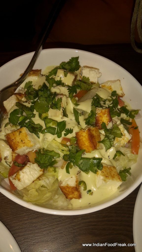 Paneer pesto saladIn the sides, the French fries served in Wendy’s are natural cut fries with sea salt and not the McCain’s French fries which almost all the food chains use and which we have so gotten used to eating. The fries are totally limp and a bit too under salted for my palate. The Chicken Chili can be avoided as it totally lacks the robustness of mutton/beef. The Bacon and Cheese Baked Potato was loaded with cheese but made me miss sour cream. One must be warned that in their Chicken Ranch Salad, they use chopped green chillies which I discovered to my dismay on my second visit. They were so sharp and I was so unprepared for them.