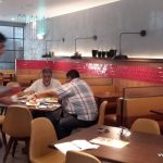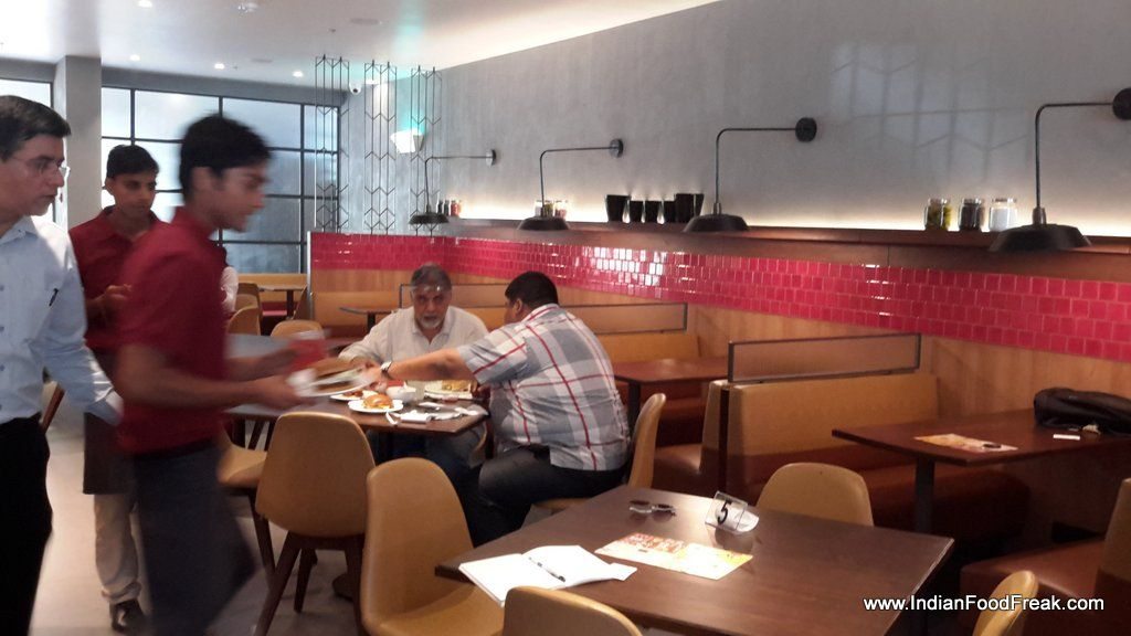 As a customer, I go order, find a table and sit down. I get a table locator number, which the server locates for serving my order. This saves me the trouble of standing in queues to order, waiting for my order and then doing the balancing act of carrying my food laden tray, pushing through people hoping to be lucky not to drop my drinks and making my way to my table. Unlike McDonalds where food is served on a plastic tray, food is served in bone china here which is a pleasant change.