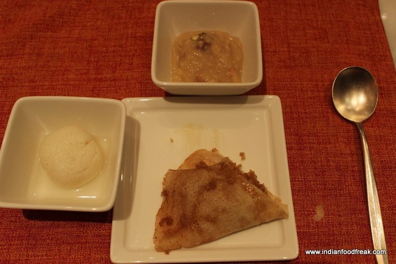 Requesting the chef to serve me a tasting portion of each of the dishes, I started off my lunch with a sampler of starters which consisted of a Chingri Maacher Cutlet (Prawn cutlet – Rs. 1,850), Bhekti Maacher Fry (Kolkata Bhetki – Rs. 1,750) and a popular starter in Bengali homes  Narkel Postor Boda (Coconut and poppy seed pakoras  – Rs. 875). I was told that the visiting chef from Kolkata’s Taj Bengal flew in with his own ingredients and that even the sea bass is flown in from Kolkata to lend authenticity to the dishes.  This authenticity did reflect when I dug into the boda and was taken back to the odd Sunday afternoons when our family used to have get togethers and mom would make this boda with fish eggs. Here, the version was vegetarian but close to the taste I had grown up with.