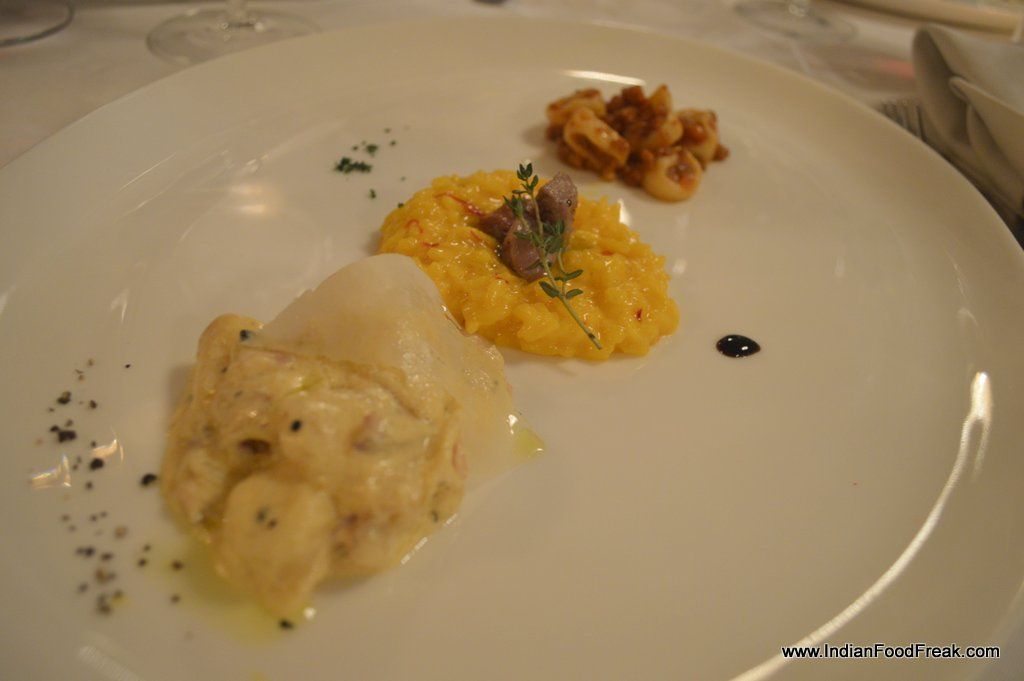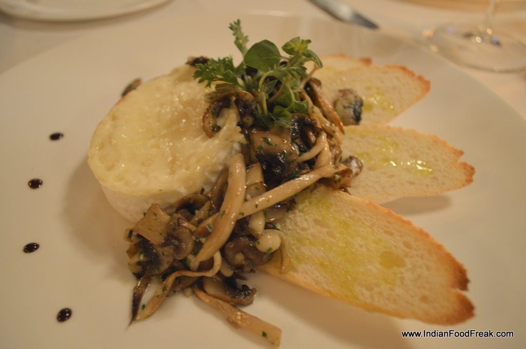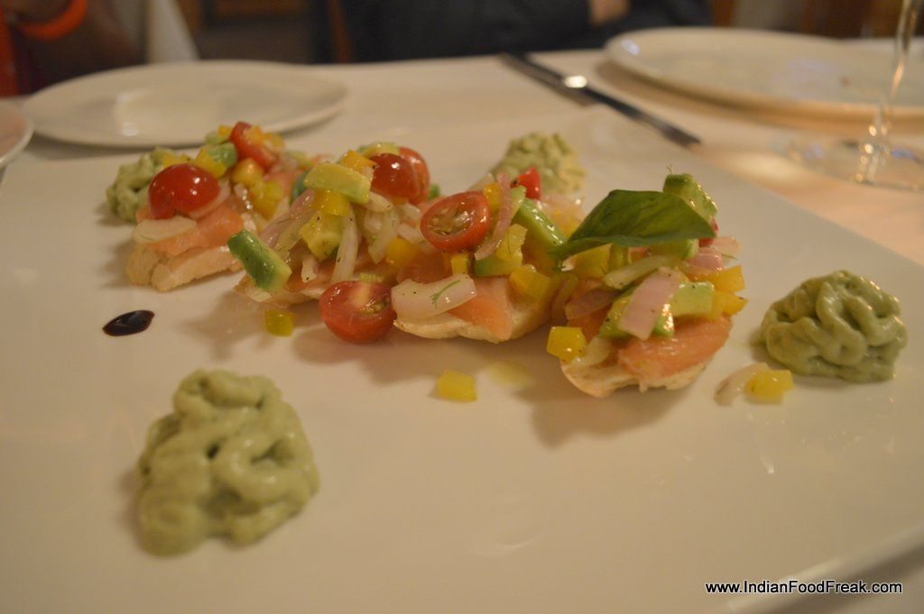 Chilled Prosecco ushered in an array of appetizers. Tomino was an eyeful as much as a divine mouthful with the baked, melted Camembert smothered with truffle oil scented mushrooms. The smoked salmon topped Crostini al Salmone with avocado, bell pepper and cherry tomatoes with avocado foam was an extravagant bite but the onion in it outsmoked the smoked fish in my opinion. But Oscar assured me that the combination is a tried and tested one back home.