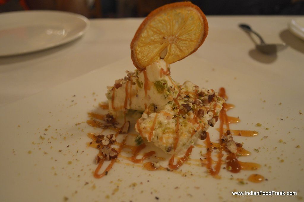 Yet, we did not have the heart (and the palate) to refuse the excellent Panna Cotta served with toasted almonds and figs. But what captured it was the tri-coloured SemiFreddodello Chef, a semi-frozen dessert that reminded us of our very own Kulfi with pistachio nuts, candied fruits and caramelised orange zest. I would have loved to taste TortaBarrozi, (“an intense chocolate cake made with almonds, coffee, cocoa and peanuts”) which is not featured in the menu but is a specialty of the region. Will the genial, ever-chuckling chef Romina Lugaresi oblige?