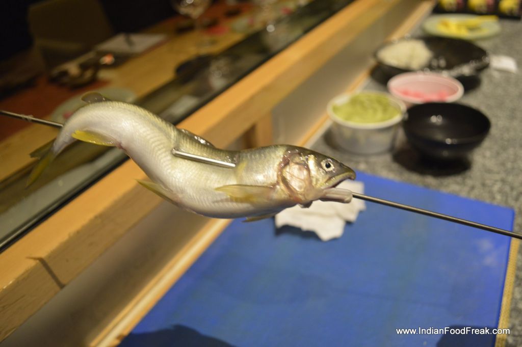 The Chef also showed us the Ayu fish that he grills so that it looks like a dancing fish. Westin is one of the very places in India that serves this Japanese river fish that can only be caught during June & July as per the government guidelines. While Japanese may love this fish, I find the skin to be bitter while the flesh inside is sweet. It will take me some time to start liking it.