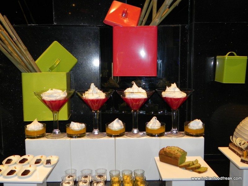 Agedashi Dofu, deep fried tofu in soy and Dashi sauce was a delight even for a non vegetarian like me. Yasai Nimono, assorted vegetables in the hotpot made me yearn for some chicken and prawn . Sakana Miso Zuke, grilled Miso marinated fish, had great flavours but could have done with some extra seasoning. Katsukare, breaded pork in curry sauce was another disappointment. The curry, though well flavoured, took a beating because of the stringy overcooked pork. The live station serving freshly made noodles with a choice of prawns and vegetables was a delight to watch but lacked in taste and flavours ..