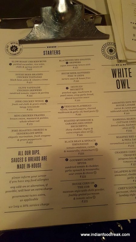 It was for the second time that I was visiting the White Owl Brewery in Lower Parel, this time to check out the menu curated by their new Chef Dinesh Bherwani. I wouldn’t rate my last food experience at the brewery top notch and hence I was filled with some trepidation during this visit as well.