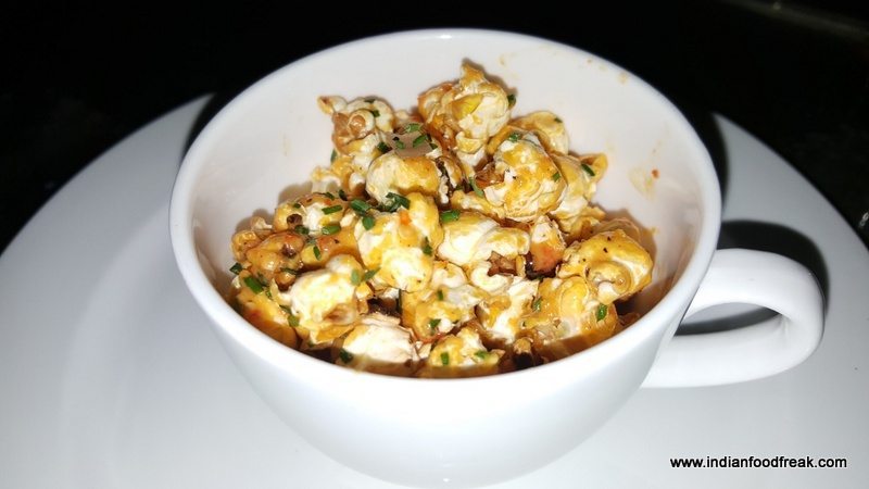 a very potent contender to bar snacks all around. Do try their Parmesan and chives flavoured popcorn for its subtle cheesy herbaceous flavour, or their Chilly flavoured one where the tabasco style chilly kick hits at the tail end of each bite while the buttery start balances of the tail end spice in each bite. The stand out for me