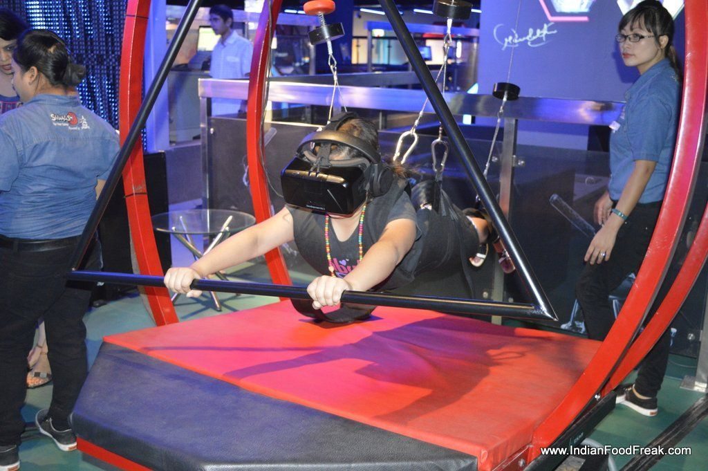 Parasailing experienceLocated behind Starbucks at Cyberhub and occupying the entire ground floor of a building (whopping 47000 sq ft approx), Smaaash is wholesome fun for family and friends to spend the entire day in a world of its own. It boasts of many virtual reality interactive games and rides that will keep everyone occupied without anyone catching up on facebook or whatsapp on their mobiles. Here are the games that we tried and the ones we loved: