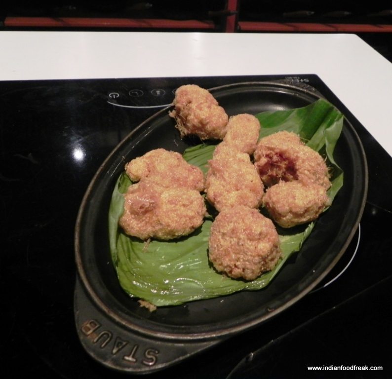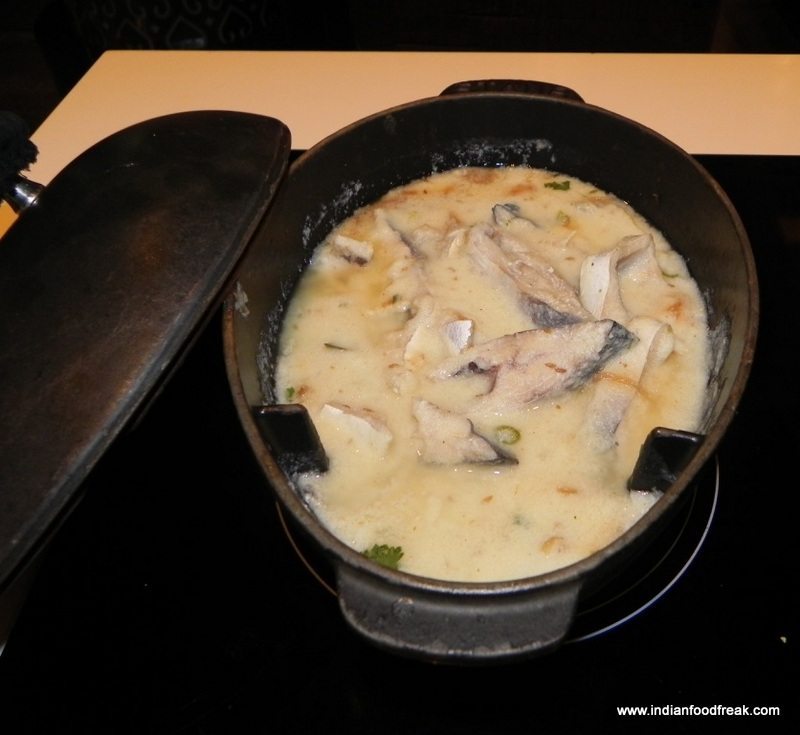 We started off with the Marghi Na Farcha and Bheja Na Cutlets. For the uninitiated, that’s deep fried chicken and brain cutlets. But the chicken is not your bland KFC/McDonald type. It is a richly marinated, full of flavour, spiced concoction of utter indulgence. This one here was one of the best ones I have had. I only wish the pieces were bigger. The Brain Cutlets were soft creamy brains lightly coated in green masala covered with egg and semolina. Would have liked a little more flavour in my cutlets though. Both these dishes just got my engines going. I have always maintained that Saas Ma Machchhi, pomfret in vinegar and rice gravy, is the unsung hero of Parsi cuisine and has been overshadowed by its haloed cousin, the Patra ni Machhi. But I was pleasantly surprised to see it not only in the menu but also making a delicious dish out of it. I dare say there may have been some converts to it last night.