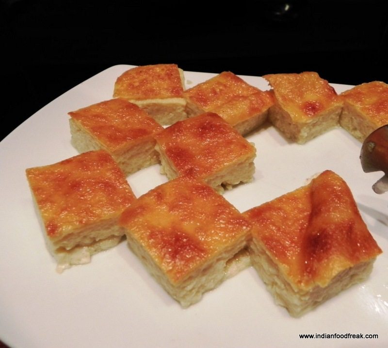 The desserts were Kesar Ravo, semolina cooked in milk and nuts flavoured with saffron. This is a good-omen dish for the Parsis and is said to bring luck. The other very Parsi dessert was the Bread Pudding. It was soft, smooth with a slight flavour of eggs and nuts.