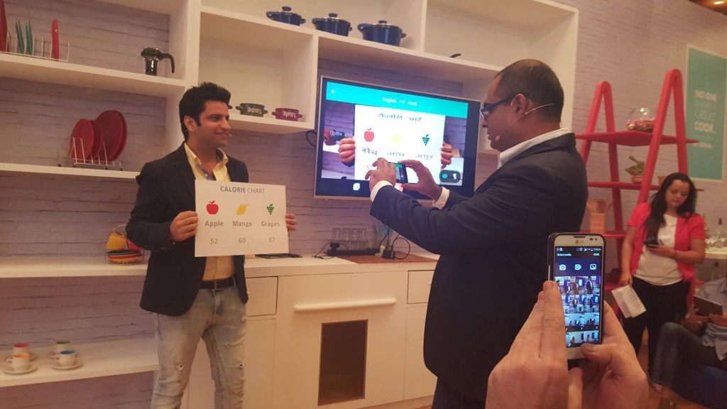 ● A hands-on showcase of the new instant translation feature in Google Translate. Recently launched in Hindi, instant translate helps you break through language barriers by instantly translating printed text, like street signs or ingredient lists by opening the app on your phone and pointing your camera at the text.