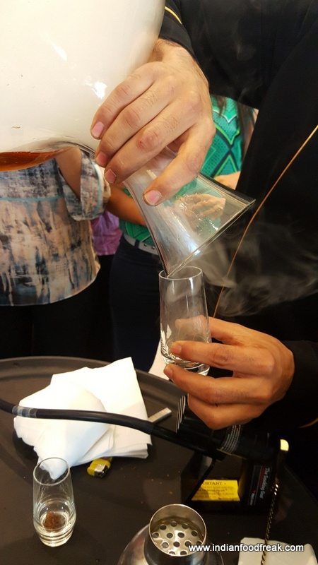 This write up will certainly not be complete if I don’t mention the most amazing cocktails that they have come up with to complement the menu. The stand out for me surely was the cigar smoked whiskey on the rocks. Lovely colourful ice balls infused with edible flowers and herbs have been used to make the cocktails and practically bring alive the popular adage of “Eating with the Eyes”.