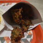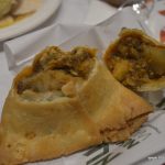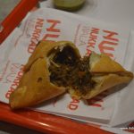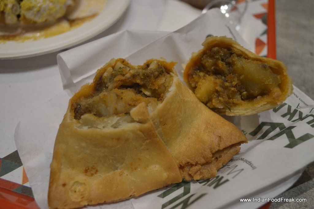 _DSC0272However, the depth of study Nukkadwala has done to replicate the best street food flavors from across the country can be seen right from the word go. The basic samosa (Rs20) has a crisp pastry with roughly cut potatoes. Many who don’t understand the samosa would use the mashed potatoes. the Keema samosa (Rs 60) is one of the better ones you’ll find anywhere; it is not only moist from inside but it has more of meat than the other ingredients that are usually added to reduce the cost resulting in artificial flavors. The Mumbai bhajiyaas (Rs 80) or pakoras are served in a cone to give that rustic feel, and they go so well with the cutting chai (Rs20) that Nukkadwala serves.