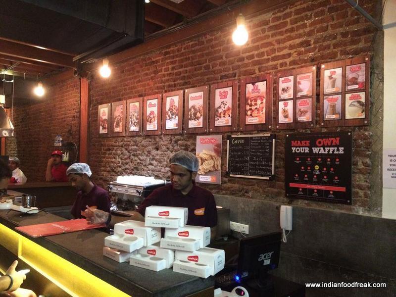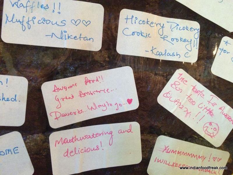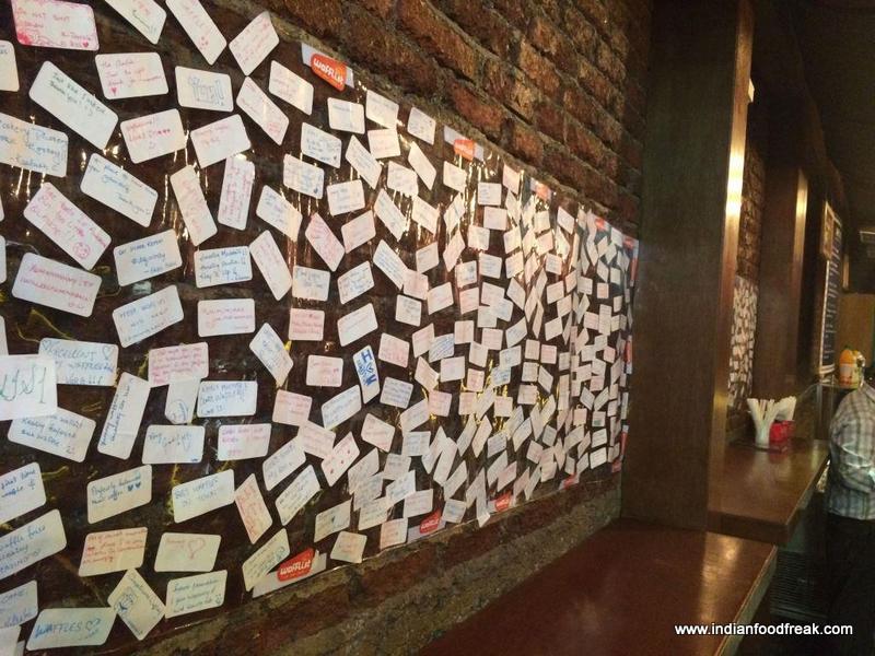 What impressed me most when I entered the place is the color scheme and décor, which is bright, colorful and vibrant. The look and feel is unique with brickwork visible across the store, lined with a large space for your personal post-it message on one side andthe other side containing large prints of the different waffles on offer. The theme is Red, but it does not overwhelm you at all.