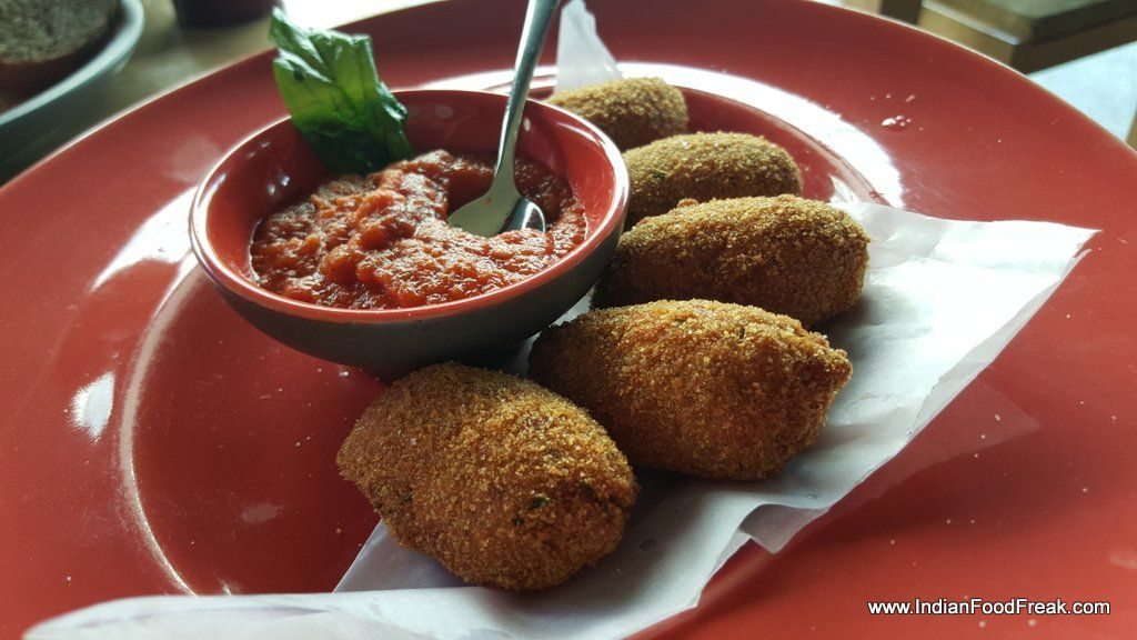 My most recent visit saw perfectly fried Chicken Croquets stuffed with dark olives and an outstanding Seafood platter, both part of the proposed new menu. The squids especially were fabulous tasting, soft and un-chewy. Not a great fan of squids, usually, I savoured them immensely. Foccacia brushed with fresh pesto made for a tasty bite while waiting for one’s order. A glass of lemon or mint infused, aromatic, refreshing water was all that one needed to draw to an end the several satisfying meals.