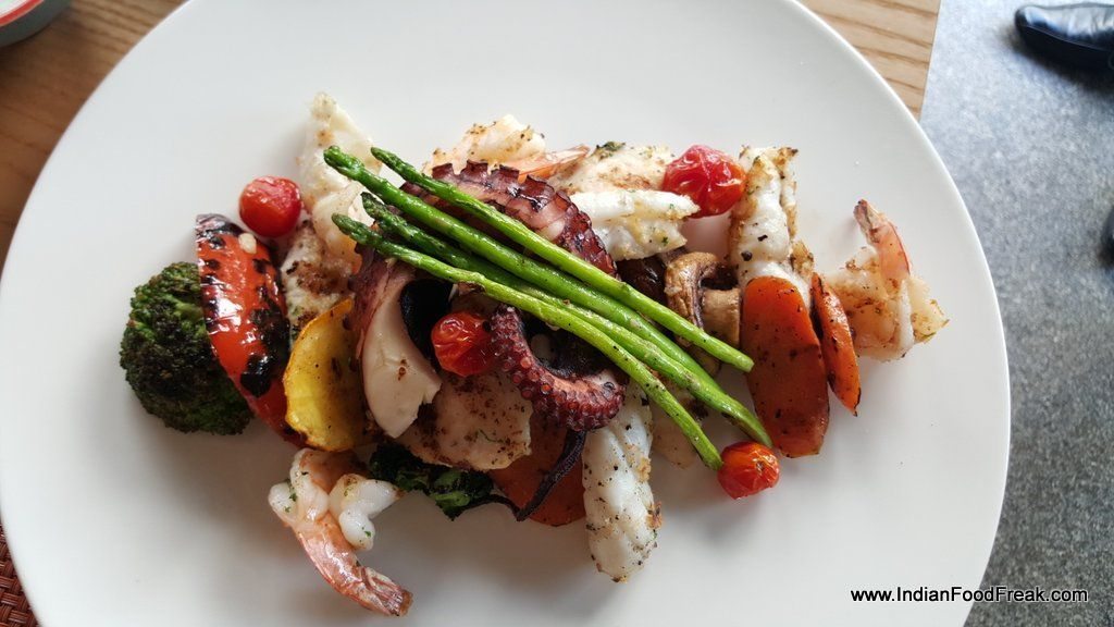 On my first visit, I went vegetarian, unusual for a carnivore like me. The Vegetarian Carbonara was colourful, full of goodness that offset the velvety, creamy, calorific sauce. The Mushroom Risotto was exquisite with the captivating aroma of truffle oil, both the pasta and the rice done to a perfect al dente. The next visit saw me trying an intimidating yet alluring Grilled Octopus resting elegantly on a bed of grilled vegetables. The Octopus was soft and tasty, cooked for nearly four hours in an aromatic vegetable broth and then grilled to perfection.