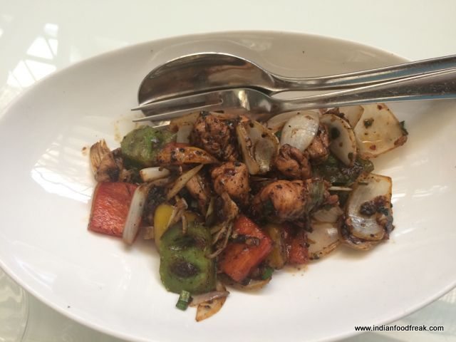 The Non Veg Fare was far more exciting (surprised?). I loved the Stir Fry Chicken Black Pepper with crunchy capsicum and cleaned up the Prawn Chive Dumplings. The Fried Lemon Grass Chicken was very tasty and I just could not hold back bite after bite. The taste buds were afire with the new flavor but the taste was quite amazing. The Chicken Satay was standard quality and a hit with my 2 year old, which is a good sign – she ate all of 8 pieces.
